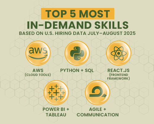 U.S. Job Seekers – Here’s What’s HOT in Hiring Right Now (July–August 2025)At bEdge Tech Services, we work directly with U.S. employers and vendor partners to place candidates across tech roles.From hundreds of real recruiter requests, here are the Top 5 Skills clients are asking for most often — if